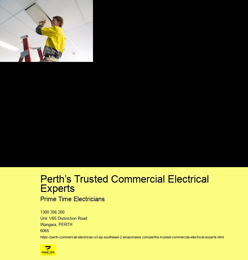 Perth Commercial ElectricianWe understand that electrical issues can disrupt your business operations and impact productivity. As a commercial electrician Perth, we offer rapid response times to address any electrical problems promptly. Our team is equipped with the expertise and tools to diagnose and resolve issues efficiently, minimising downtime and ensuring your systems are back up and running quickly. We provide emergency electrical services around the clock, giving you peace of mind knowing that help is just a phone call away. At Prime Time Electricians, we are dedicated to keeping your business operational.